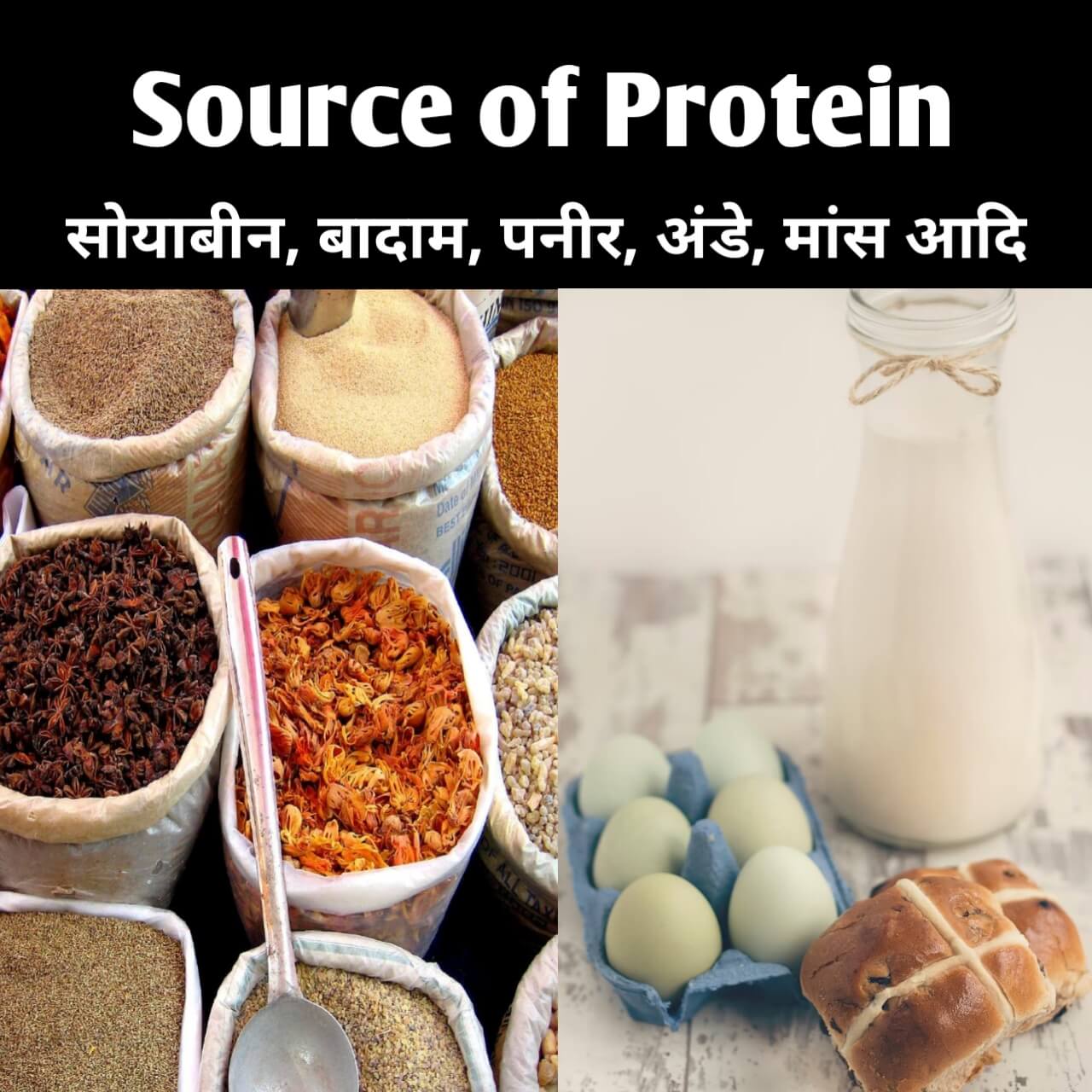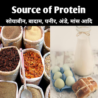 - दाल, सोयाबीन, बादाम, पनीर, अंडे की जर्दी, मांस, मछली, दूध, आदि प्रोटीन के मुख्य स्त्रोत हैं।