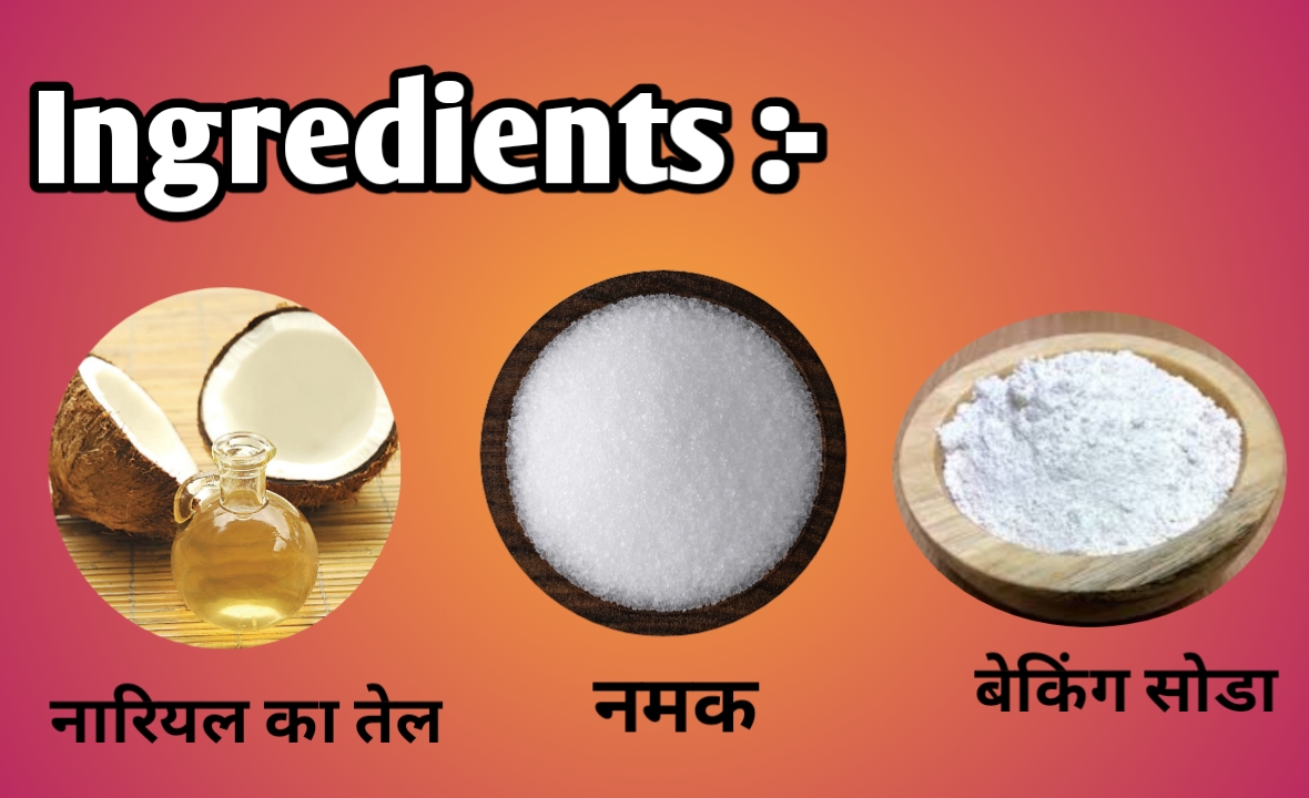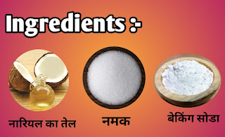 1 चम्मच नारियल के तेल में आधा चम्मच बेकिंग सोडा 2 चुटकी नमक मिला कर इसे अच्छी तरह से Mix कर लें। इसके बाद इस मिश्रण से अपने दांतों को उँगलियों की सहायता से या फिर ब्रश की सहायता से अच्छी तरह साफ करे।
